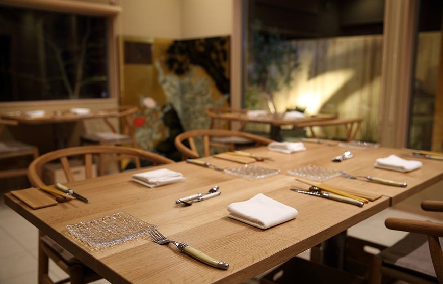 四季を感じられる坪庭とそれを眺められる空間で日本の和の心を大切にした仏蘭西料理を提供。大切なひと時を大切な人と心おきなく味わっていただくために、最高の空間とお料理をご用意しております。