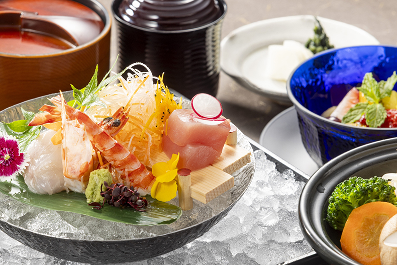 季節に合わせた旬の食材をぜいたくに使用した和のお料理をご用意しております。三河湾を一望する開放的な個室で、 多彩なお料理をお楽しみいただけます。
